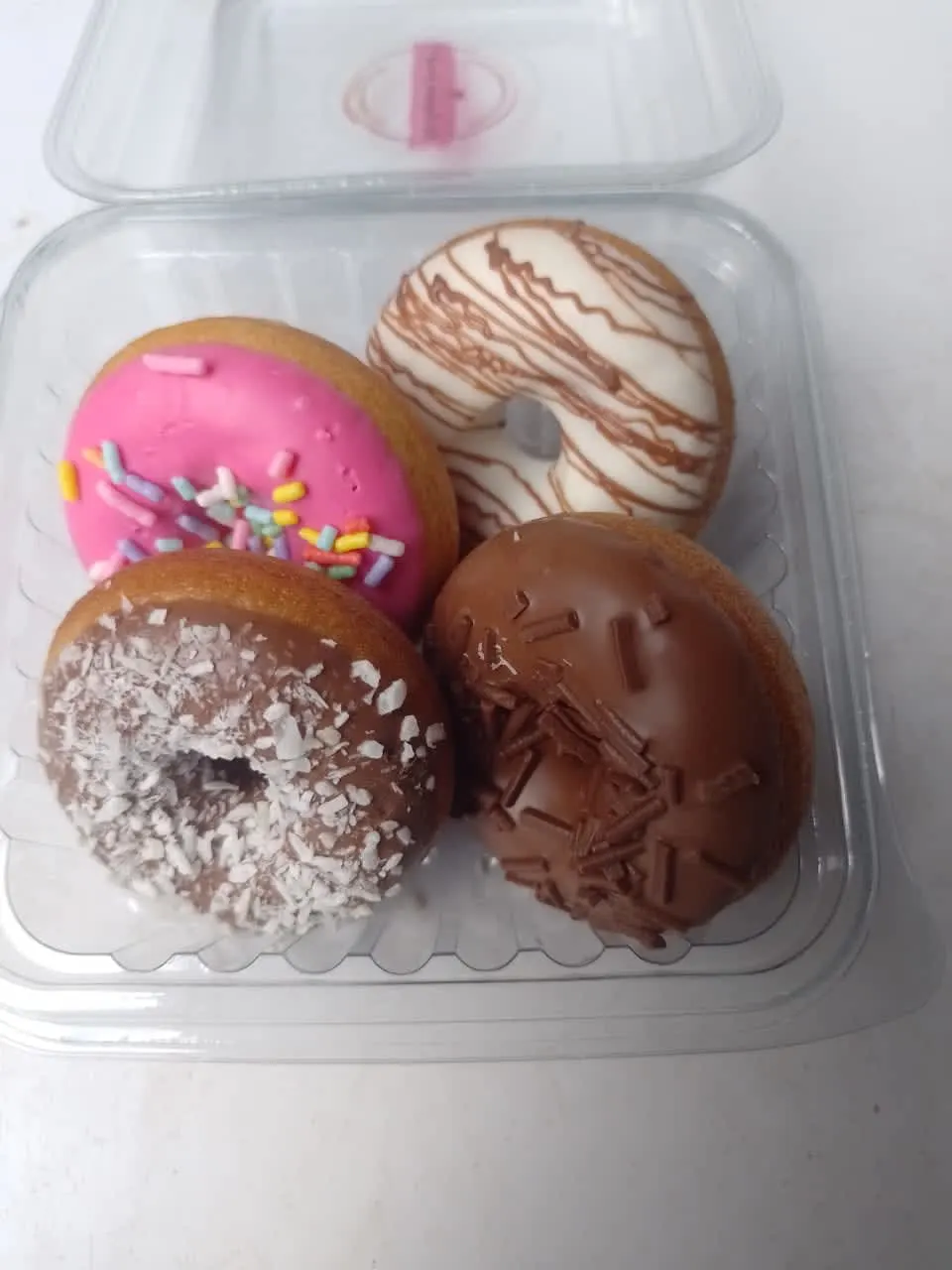 Escolha o sabor da massa do cake donuts e chocolate e o granulado da sua preferência.