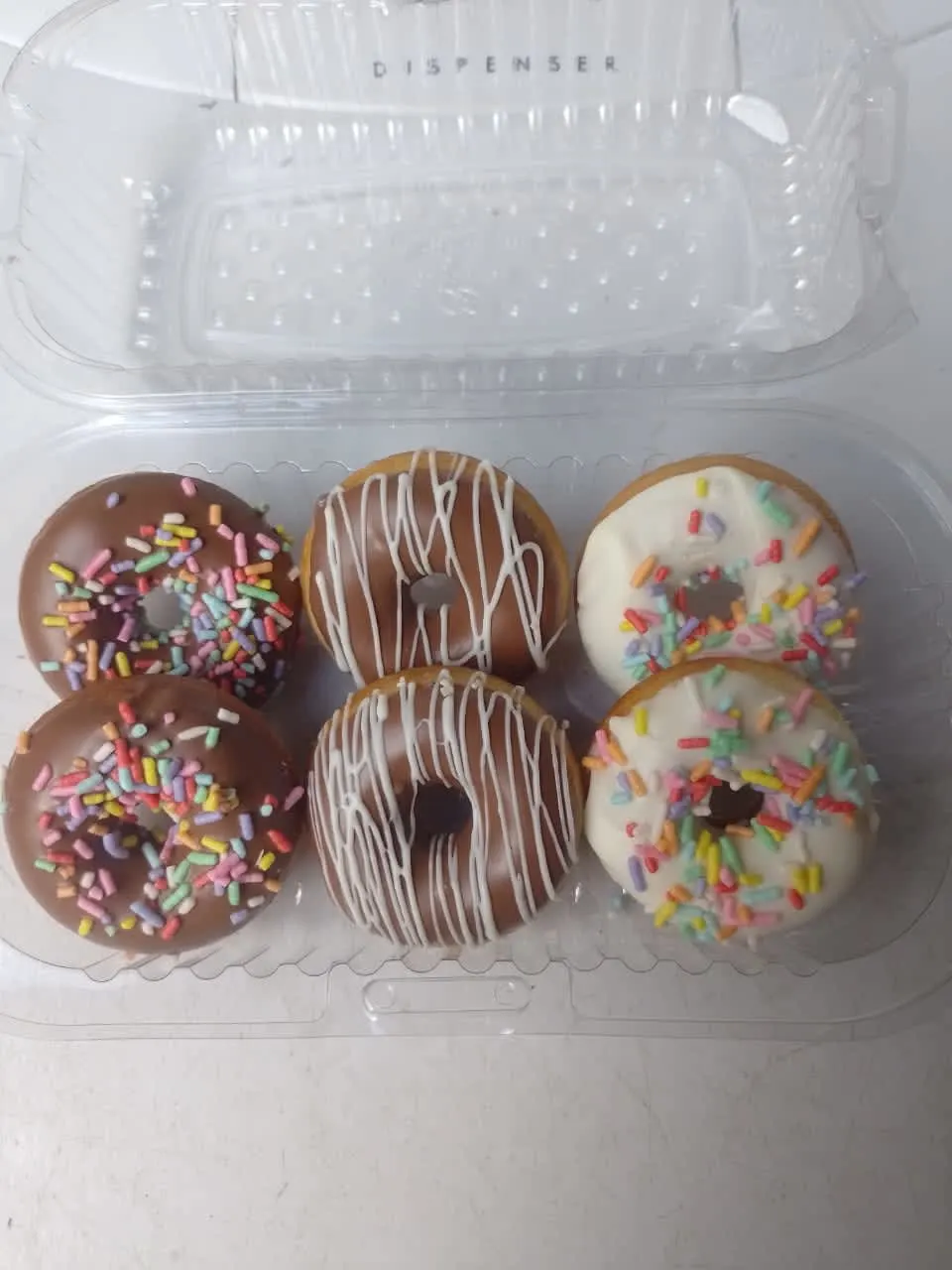 Escolha o sabor da massa do cake donuts e chocolate e o granulado da sua preferência.