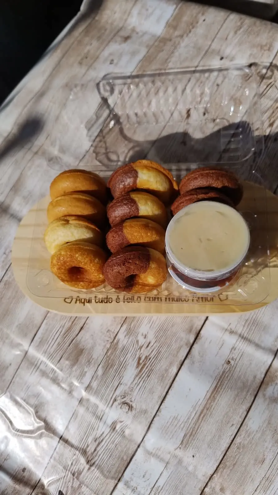 Escolha sua massa de cake donuts e o recheio que será dois potinhos de 50g cada.