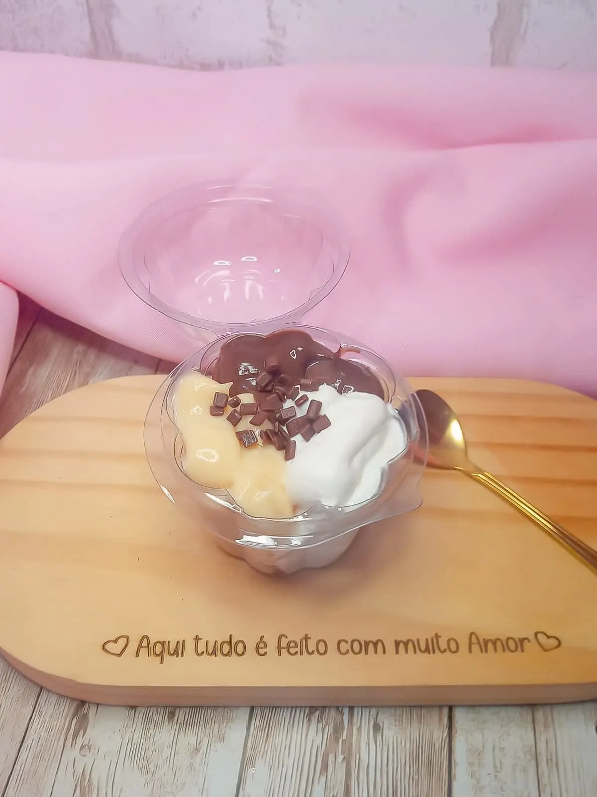 Apresentamos o nosso Copo Trilogia, uma verdadeira explosão de sabores que vai encantar seu paladar! Começamos com uma camada irresistível de brigadeiro de chocolate cremoso, que derrete na boca e traz todo o sabor intenso do chocolate. Em seguida, adicionamos um brigadeiro de chocolate mais denso, que proporciona uma textura rica e deliciosa. Para equilibrar essa combinação, temos uma mousse branca leve e aveludada, que traz um toque suave e refrescante. E para finalizar essa delícia, uma generosa camada de granulado de chocolate crocante adiciona um toque divertido e irresistível. Cada colherada é uma experiência única que vai te fazer querer mais!"